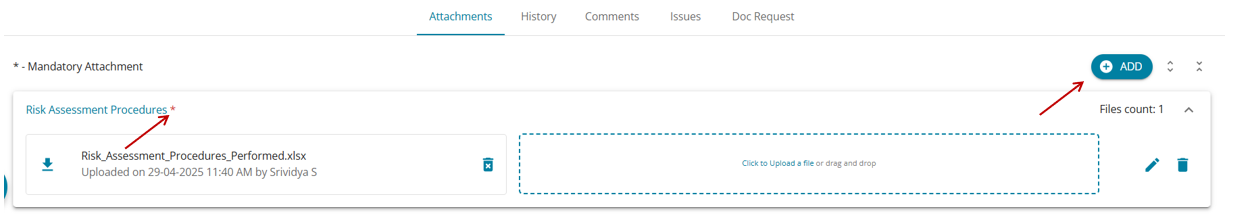- Attachments marked as mandatory will have a * marked beside the attachment name.(highlighted in red)
