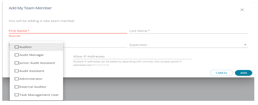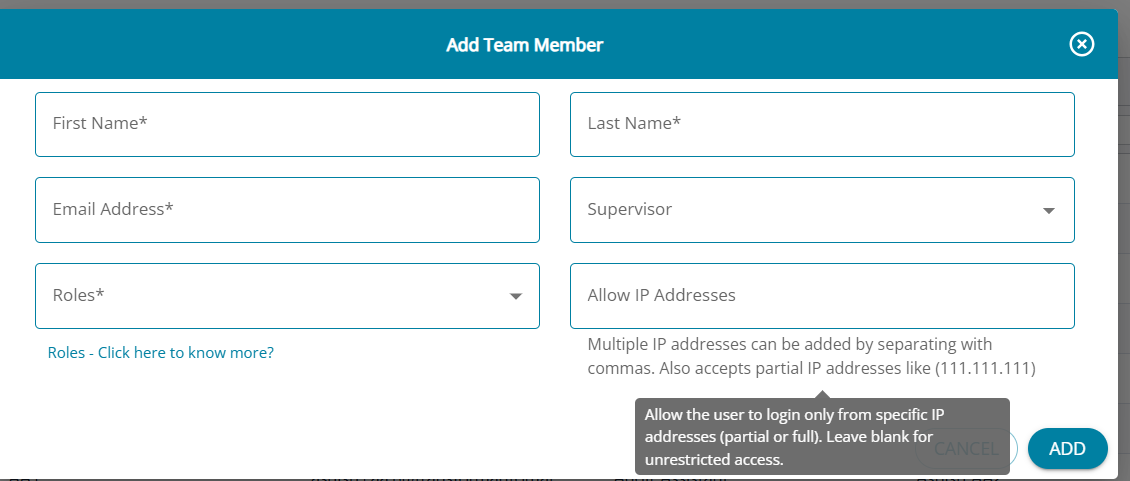 3. New/ Additional users can be added to the team members by clicking on the "Add" button.