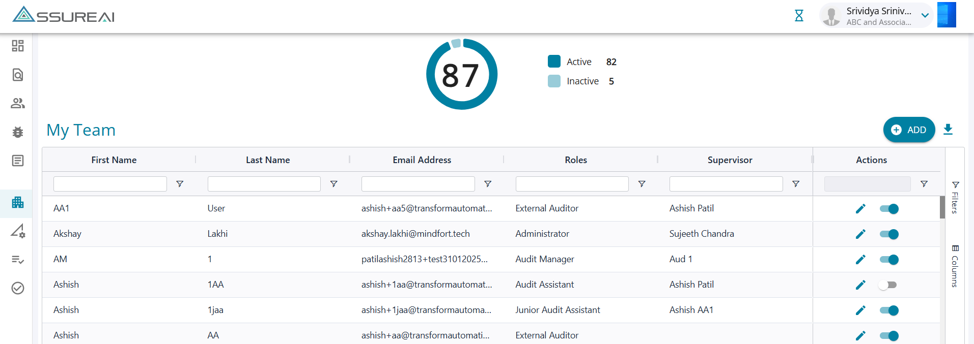 2. Uses can activate/ deactivate the users by using the toggle button under the actions column.