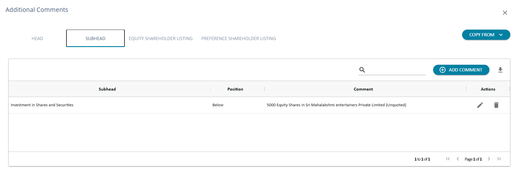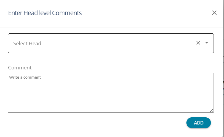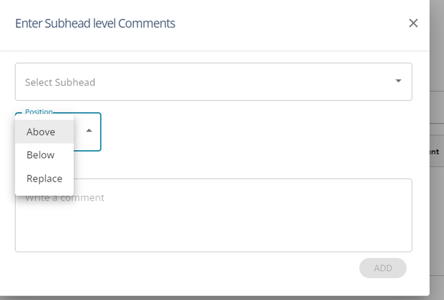 1. The user can add comments under ‘ Sub- Head Level’ and choose the sub-head under which the comments are to be displayed.
