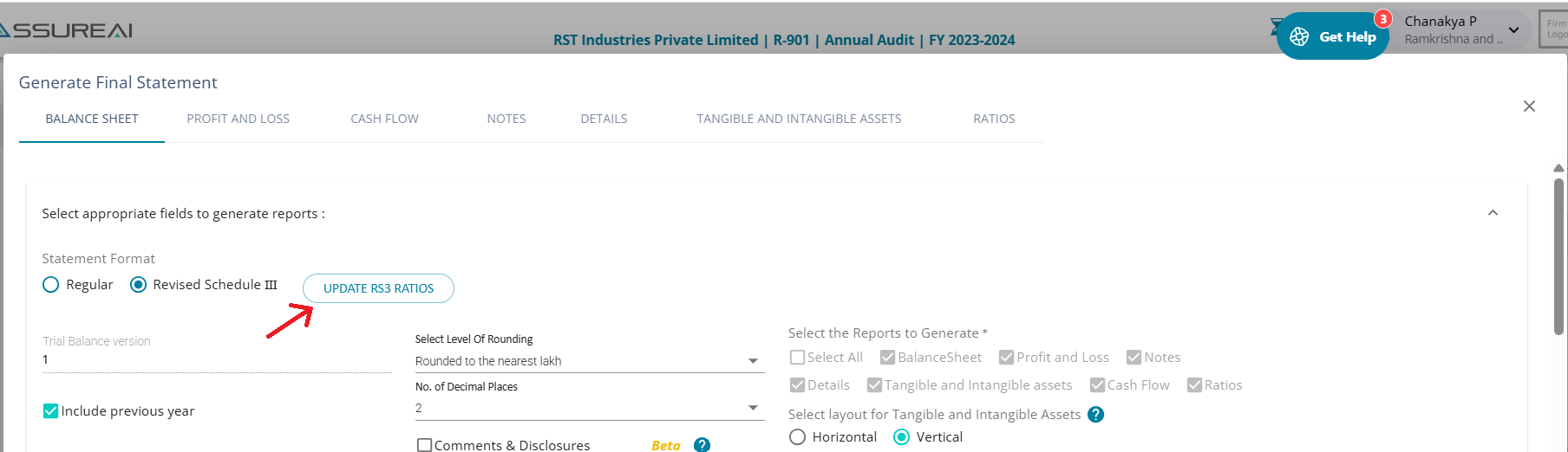 Previously, the amounts that were manually edited using the "Update RS3 ratios" screen were not getting rounded in the financials. This has been corrected.