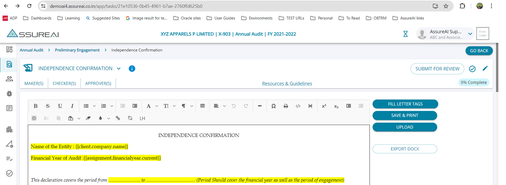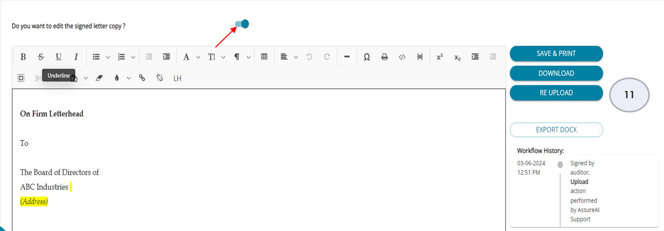 10. To edit the already uploaded letter , a re-upload can be done after making changes. To edit a task with an already uploaded letter users can click on the toggle for “Do you want to edit the signed letter copy ?” and choose yes on the pop-up asking confirmation and the letter is displayed with all previously made changes.