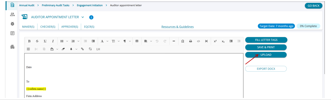 Certain letter tasks require only the client's signature. These letters must be uploaded exclusively by the client. Audit users cannot sign or upload the final version of such letters.