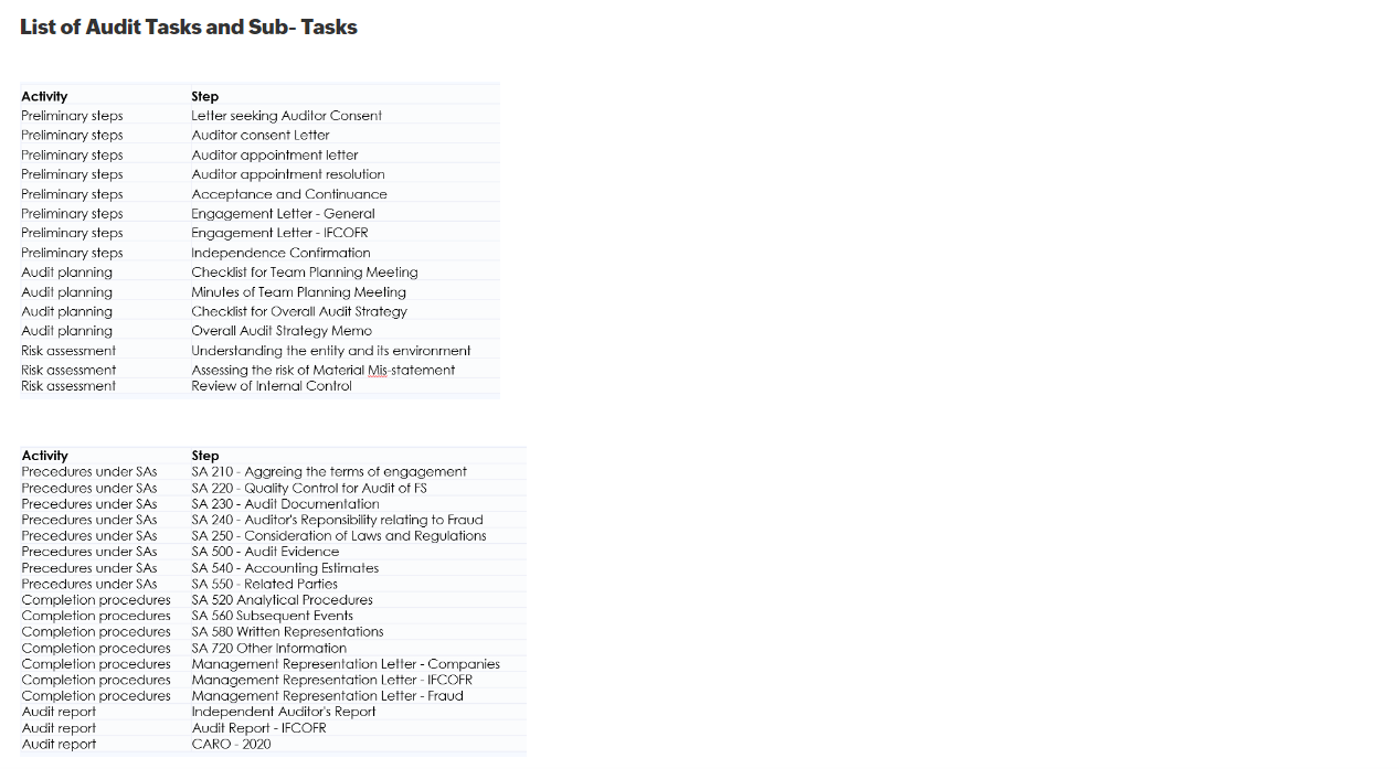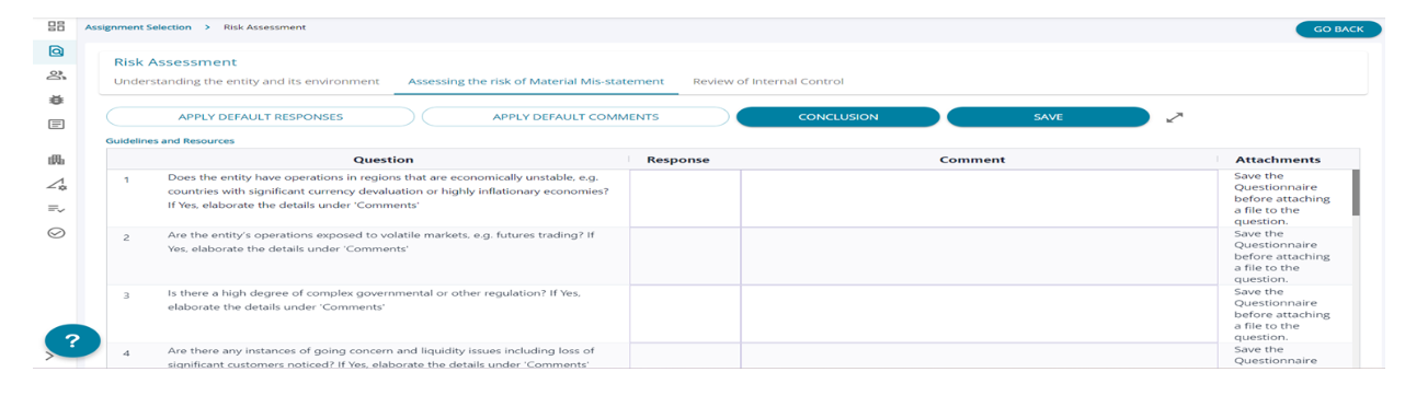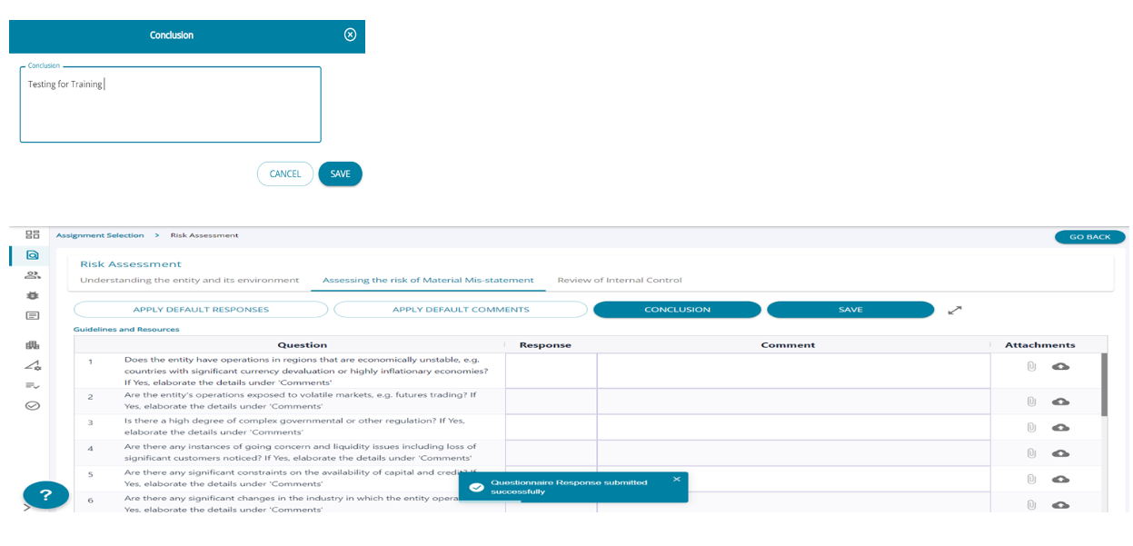 2. The user can add comments by clicking on the “conclusion” button which will be displayed in the audit summary screen, where the user can download the reports saved and updated under each task under “Audit Tasks”.