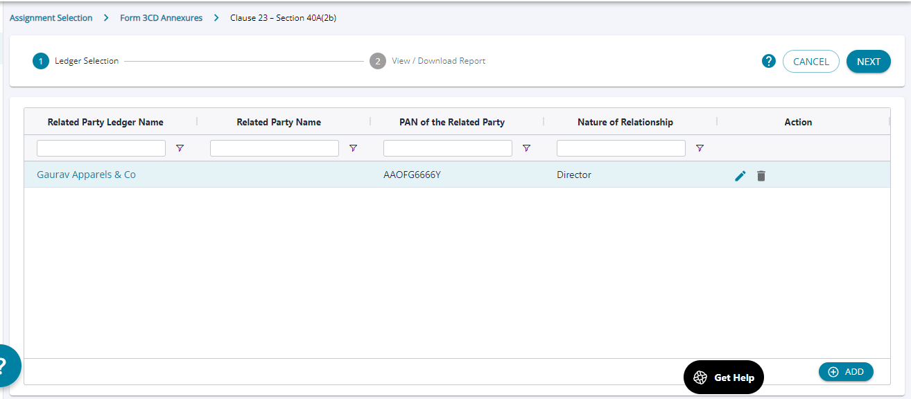 1. The user can “Add” any party as related party by adding the ledger name and describing the nature of relationship.
