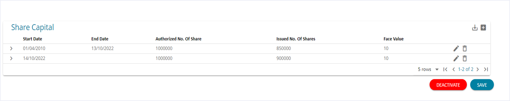 For example, If the first row of Share capital has an end date of 13-Oct-2022, the next row has to start from 14-Oct-2022, not before or after. This will also help the system to accurately compute the weighted average.