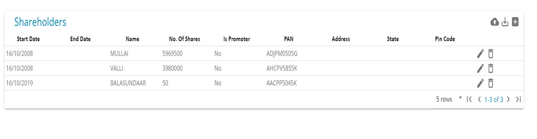 3. The end date need not be mentioned as long as the shareholder is still associated with the company and in case of change in ownership / end of role / resignation, then the end date needs to be updated.