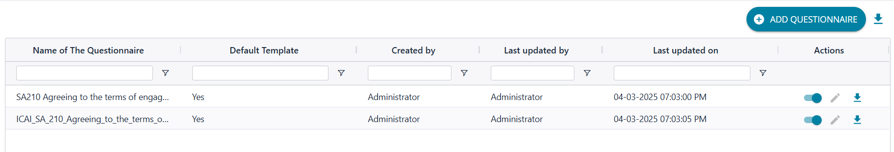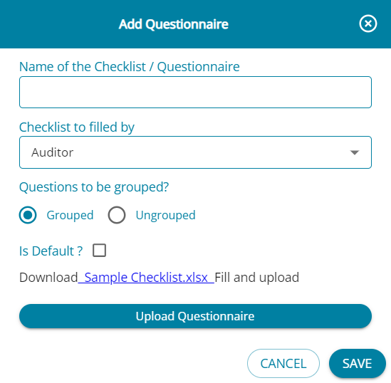 - Click on the "Add Questionnaire" button to add the checklist template.