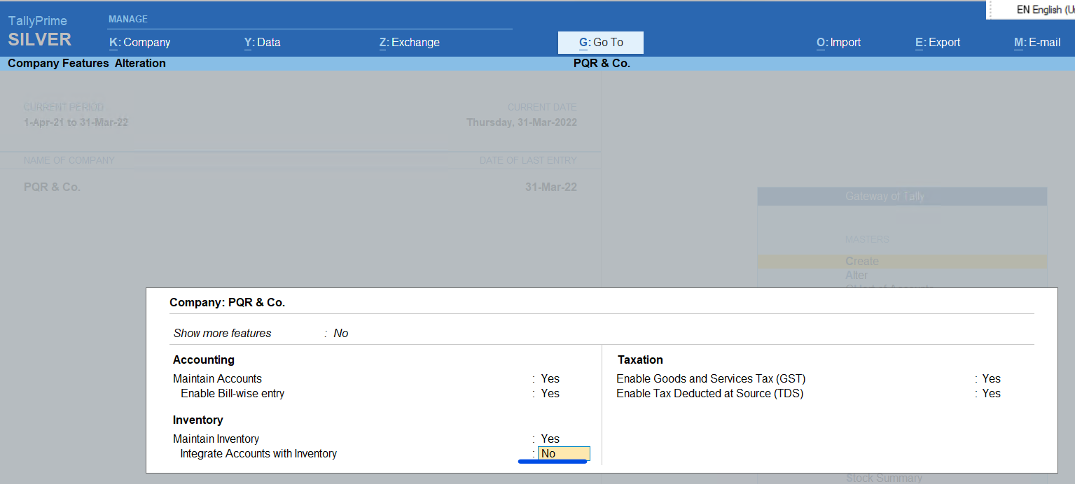 If the JSON is being downloaded from Tally Prime, the user needs to follow the steps below to De-link Accounts and Inventory.