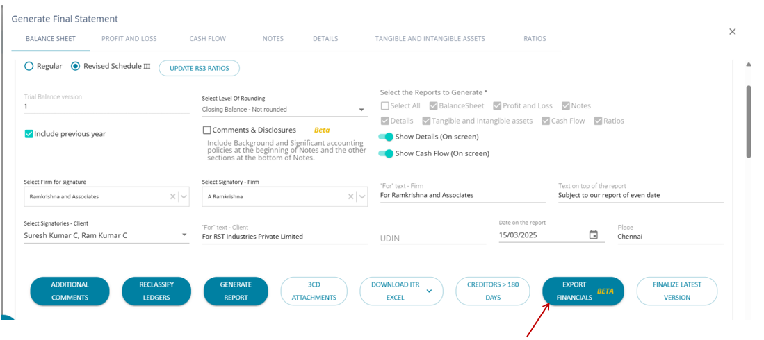 Generate 3CD attachments (BS and PL) from the Export Financials Page