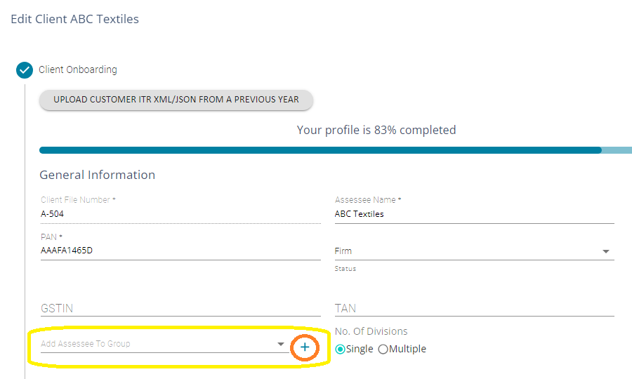 1. Edit the first client in the group. Create a new client group by clicking + (Highlighted below) and then select the client group in the dropdown