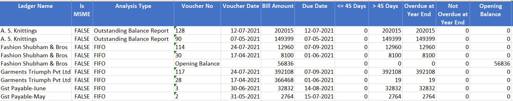 MSME Ageing - Section 43B(h) - 45 Days Payment Rule