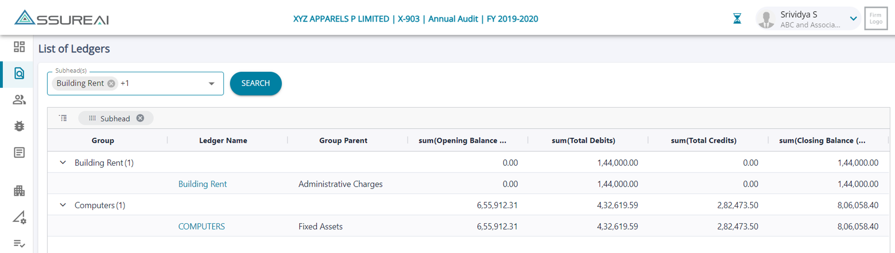 2. The user can bring more sub-heads into the screen by adding the same in the search bar on the top (all ledgers in the books will be listed for the user to choose from).