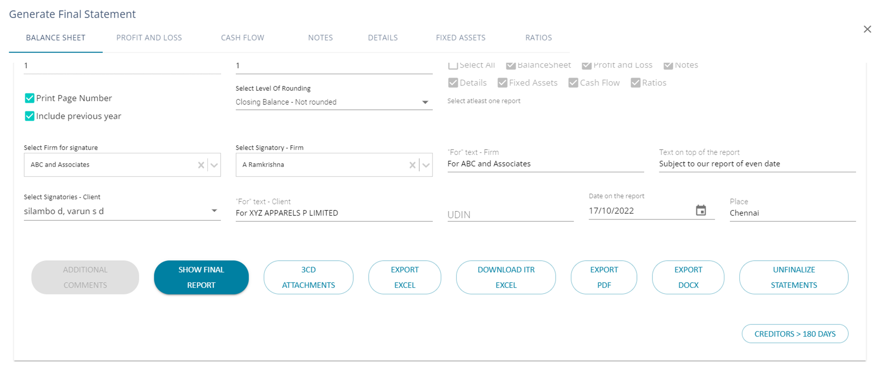 8. Financial statement will be generated consolidating all the divisions and a single Financial statement will be available for export in PDF and Excel formats