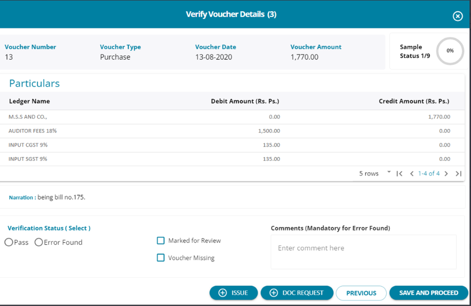 1. The user can open each and very voucher and either choose to “Pass” it or if any error is found , the user can take necessary