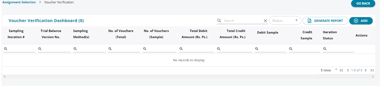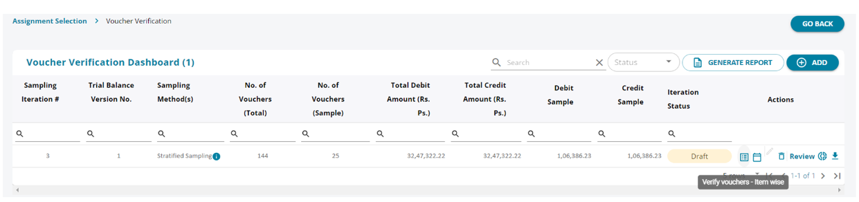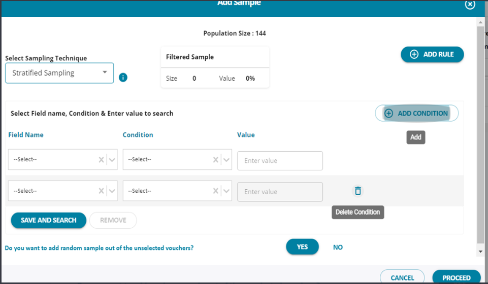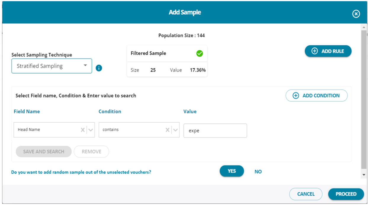 1. The user can sample the vouchers that have been loaded from the tally . By clicking on the “Add” button the user can initiate a sampling.