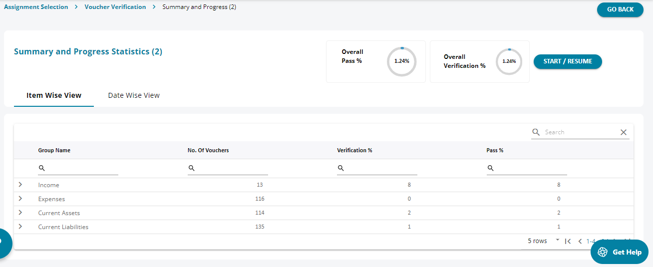 2. As and when a voucher is marked “Pass” the sample status % keeps increasing